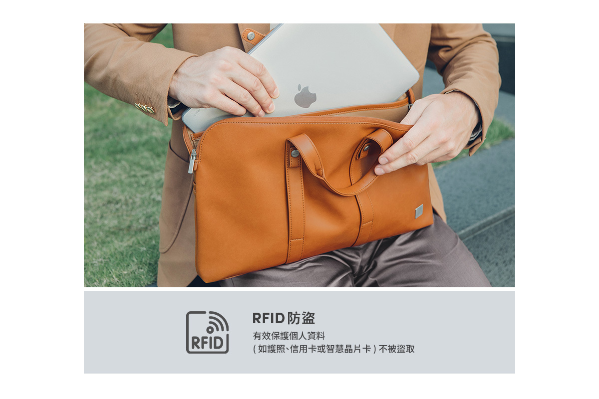 Multiple interior pockets and an RFID-blocking zippered compartment keep documents, cables, and personal items neatly organized and secure.