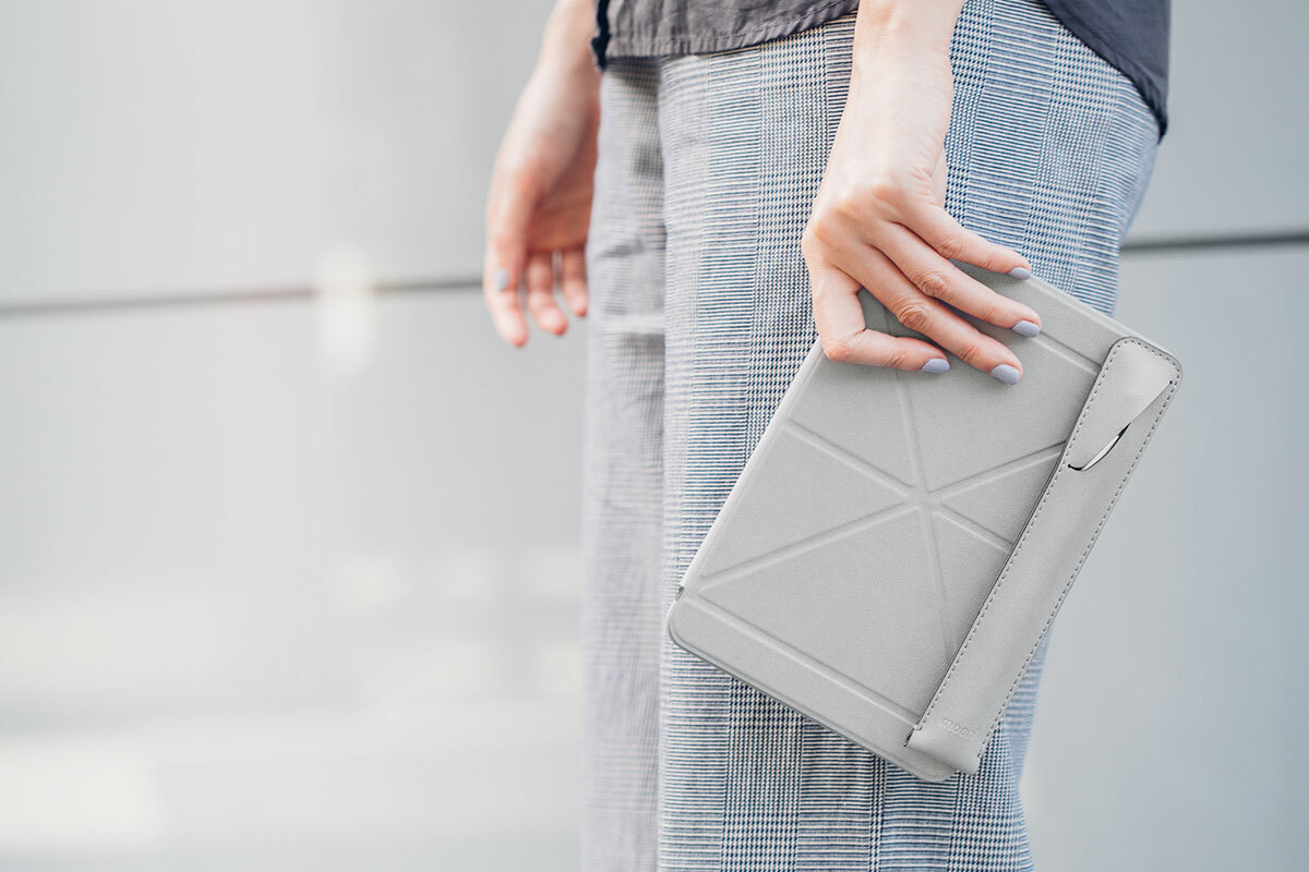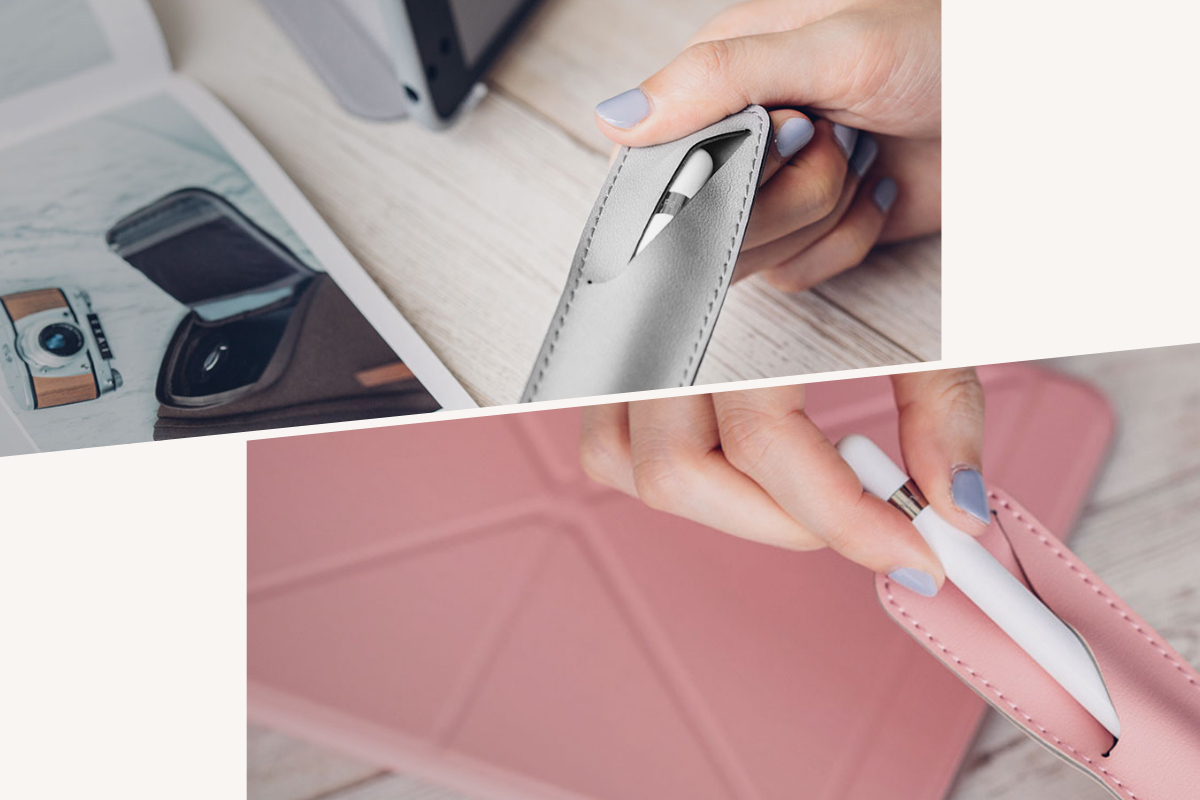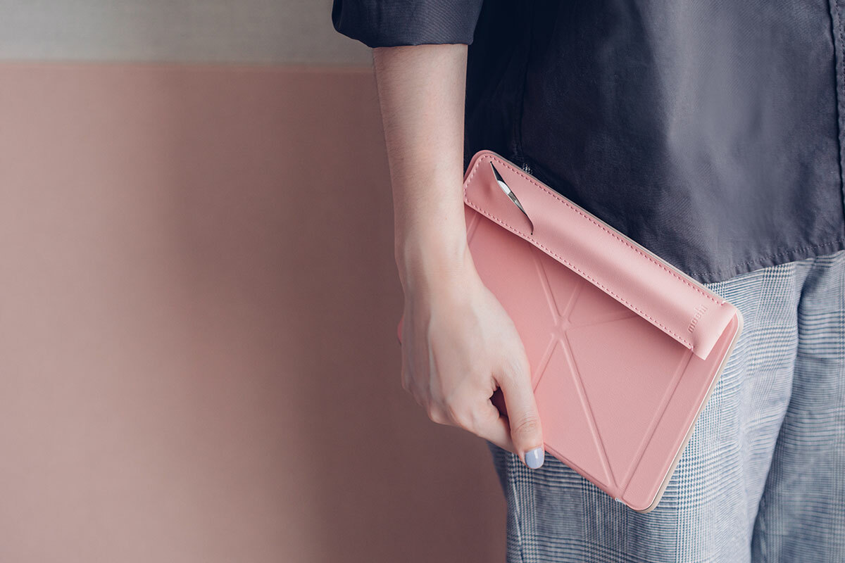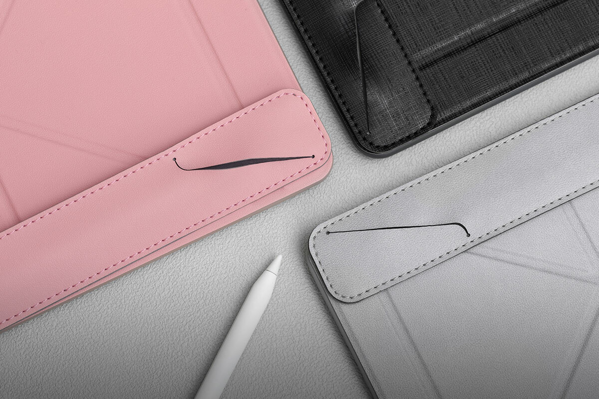 採用環保皮革及微纖維襯墊製成,能同時支撐您的 Apple Pencil 觸控筆,並保護其避免墜落。內建鐵片設計讓 Apple Pencil 觸控筆可吸附在任一 Moshi VersaCover 的 iPad 保護套,提供便利的可攜性。