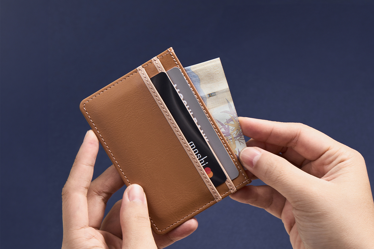 採用輕薄三卡層設計,中間夾層可收納紙鈔或放置票據,搭配跳色皮革與細緻縫線工藝,輕巧中點亮日常收納品味。