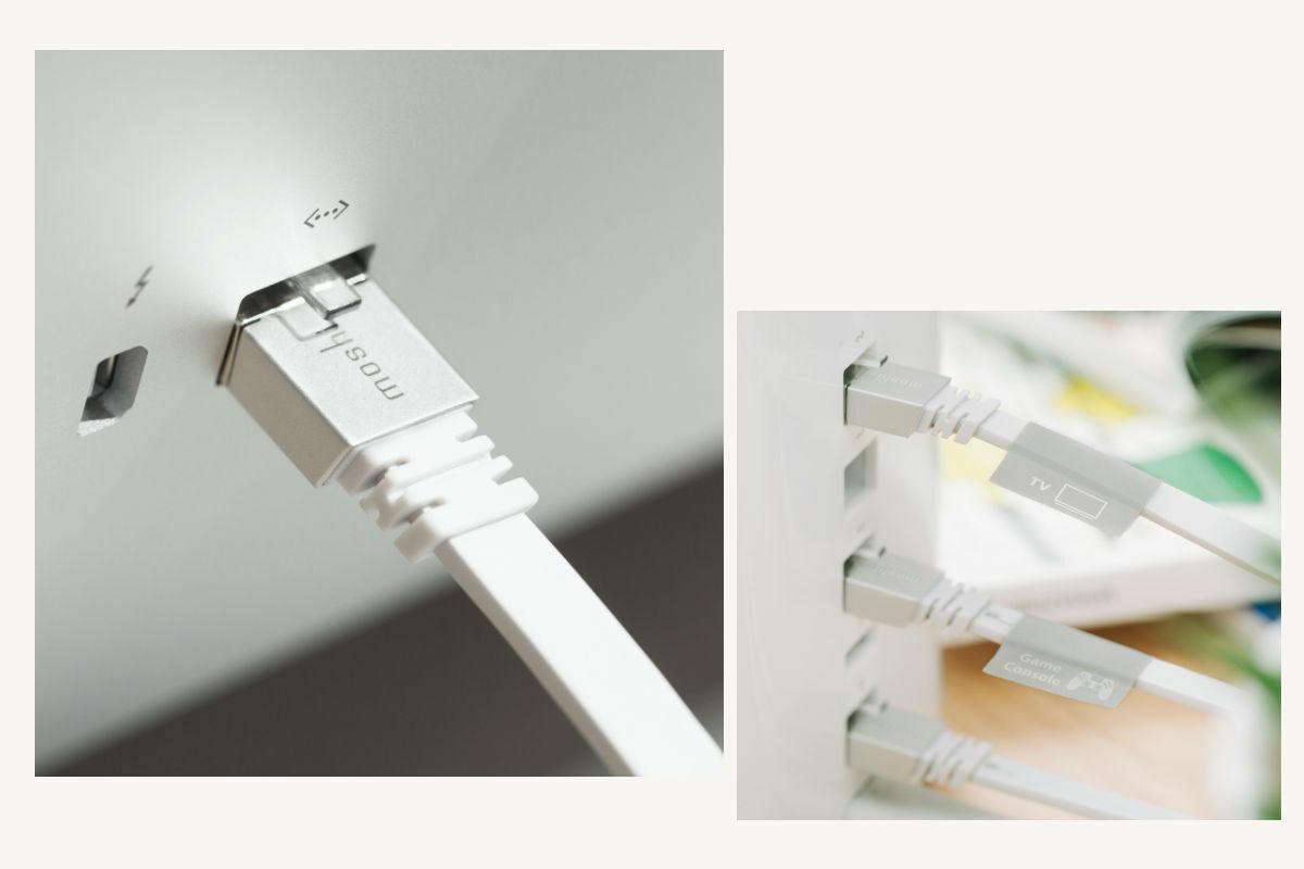 扁平線材外觀設計,使其網路佈線更整潔美觀。速率為 1000 Mbps 的高頻寬。