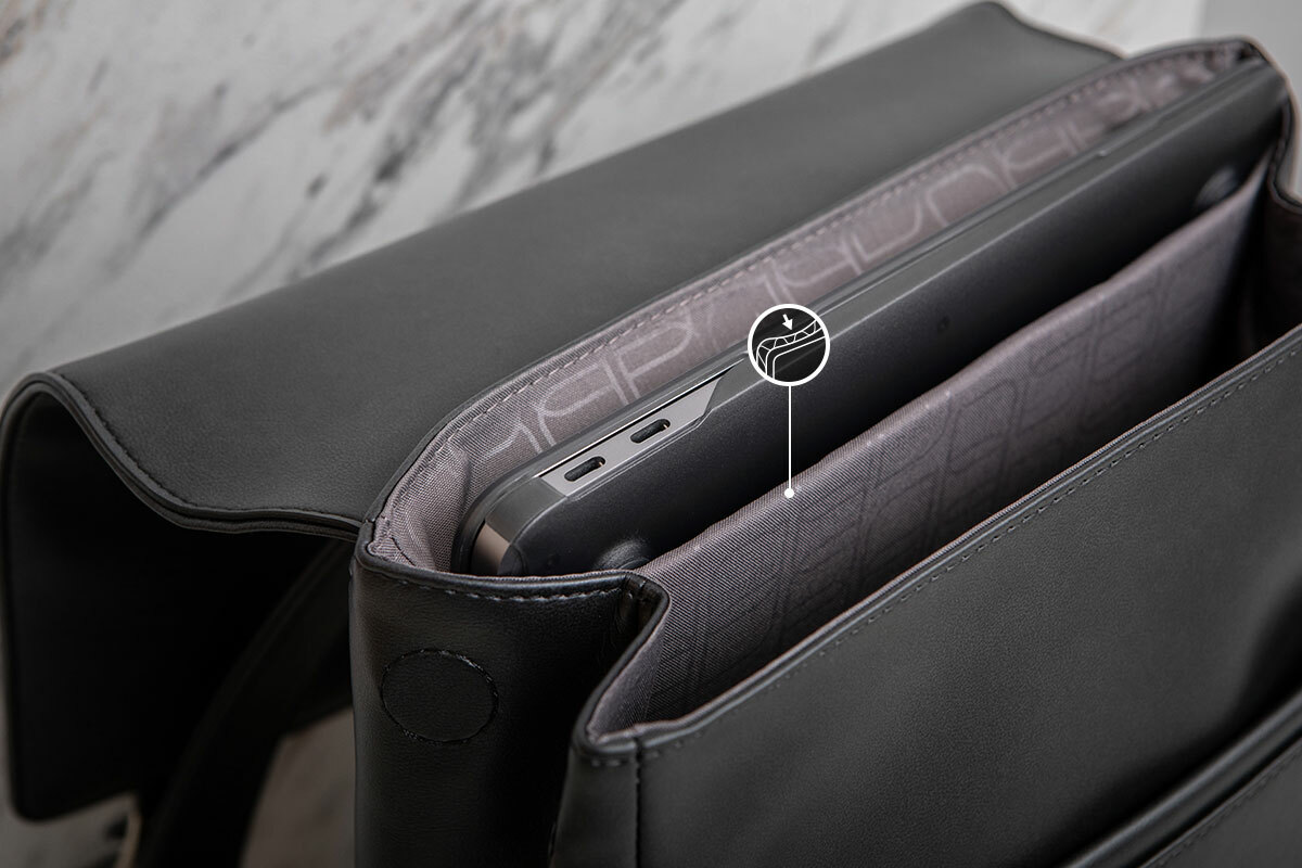 輕巧且大容量,方便攜帶每日的隨身物品 內層襯墊夾層,最大可收納至13吋筆電 貼背的拿破崙式拉鍊袋,可安全收納貴重物品 表面採用防潑水材質,防雨、防雪 RFID 防盜拉鍊袋,完整保護您的個人資料不被盜取 包內貼心固定帶,方便放置水壺或雨傘 磁吸式設計扣帶,搭配特製金屬搭扣 側邊磁吸式開闔設計,兼具有型及安全性 材質 嚴選超輕量且耐用材質 採用優質環保皮革 外層防潑水材質,內層採用易清洗材質 磁吸式設計扣帶,搭配特製金屬扣環 閃亮的金屬五金配件和釦環