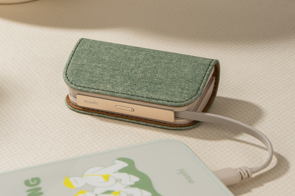 結合大容量電池、環保皮革外殼與金屬磁扣等設計細節,功能實用與美感兼具。
