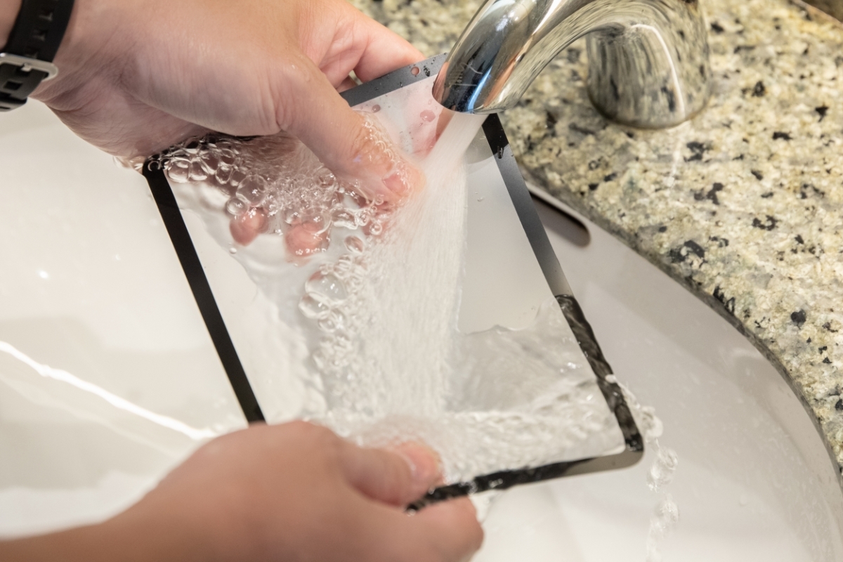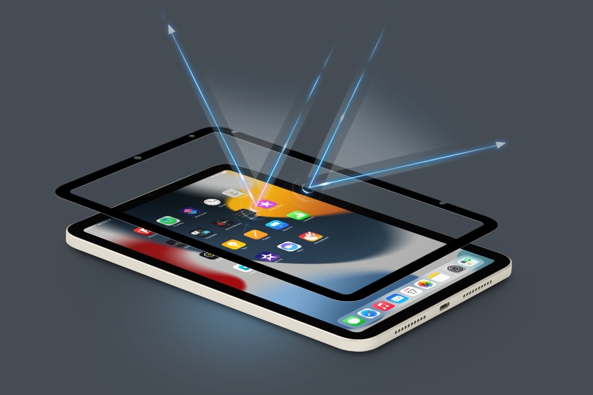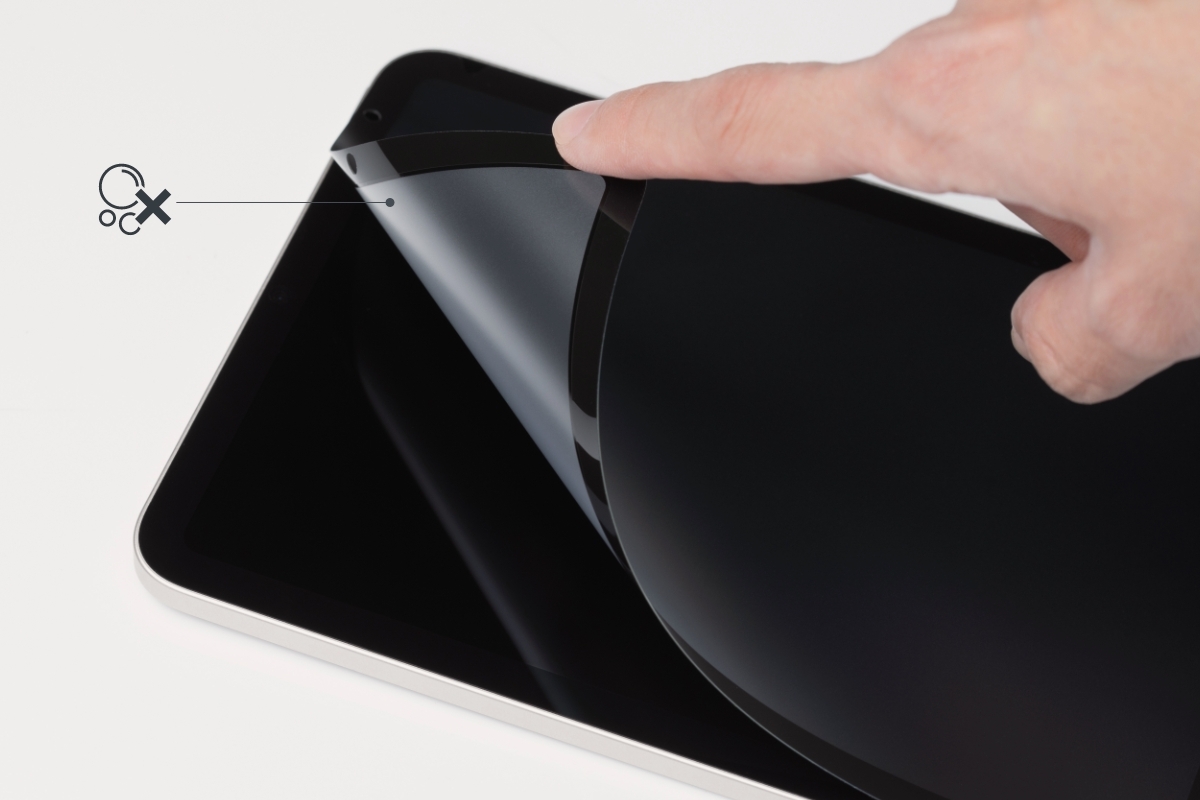 Moshi 專利設計的 iPad 螢幕保護貼 100% 無氣泡,可水洗重複使用延長產品的使用壽命。安裝方便,並可持續使用於裝置整個生命週期間。