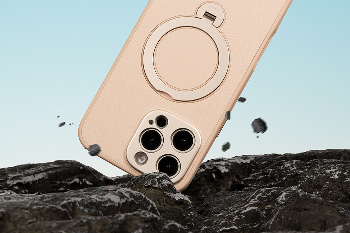 Kameleon brings a new experience of elegance and convenience. The exquisite leather material with an adjustable kickstand ring makes its usage effortless and sophisticated.