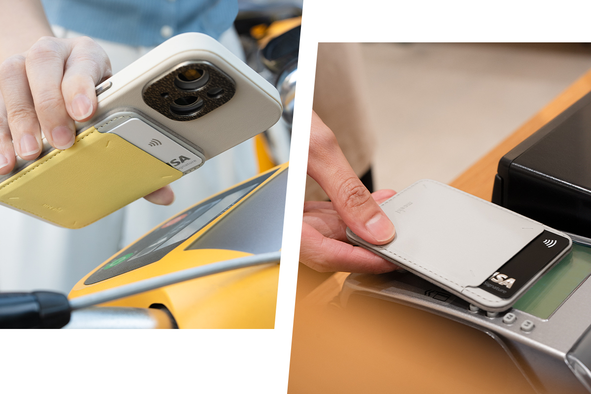 以磁吸方式將卡夾安置在手機背面,無需取出卡片即可感應使用,提供快速又便捷的出行方案。