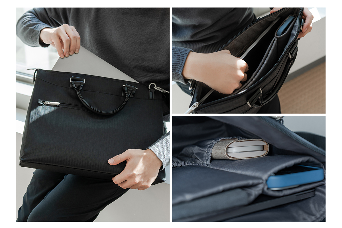 採用輕量西裝布材質設計,是通勤與出差皆宜的理想公事包選擇。